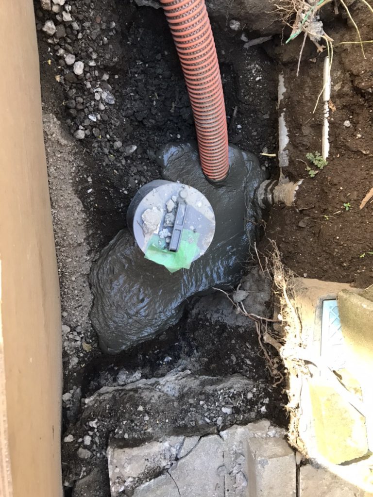 家の真下で転圧ができない位置。そこで単に土や砂で埋め戻すのではなく、「流動化処理土」を穴に流し込み硬化させる工事をご提案し、施工させて頂く事になりました。