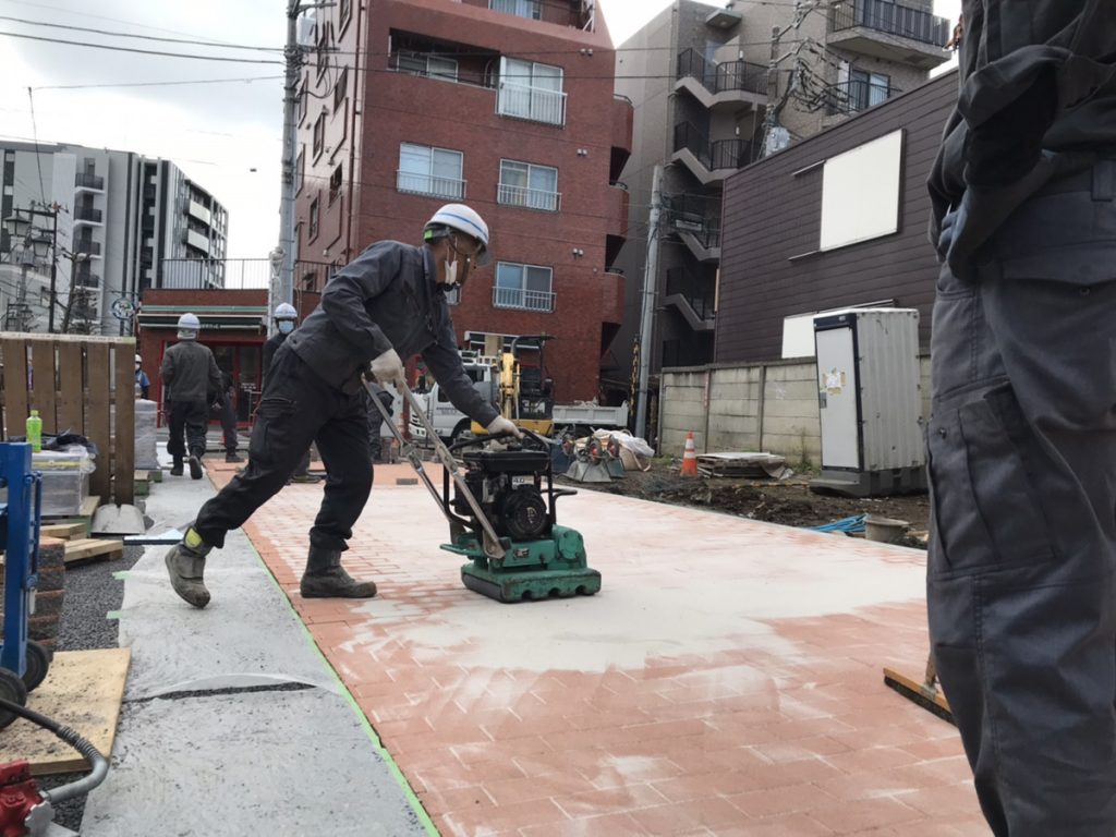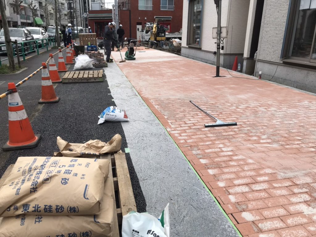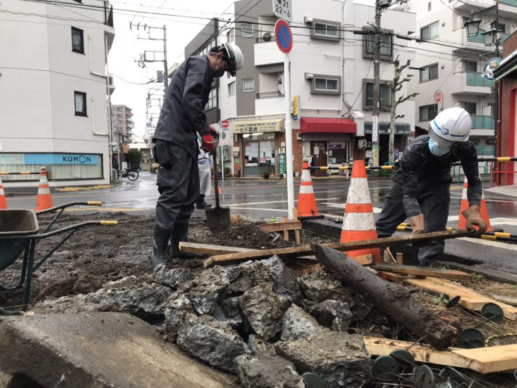この工事は、弊社がある善福寺から西荻窪へ向かう北銀座通りの拡幅のために区が買い上げた土地を、暫定的に整備する工事です。