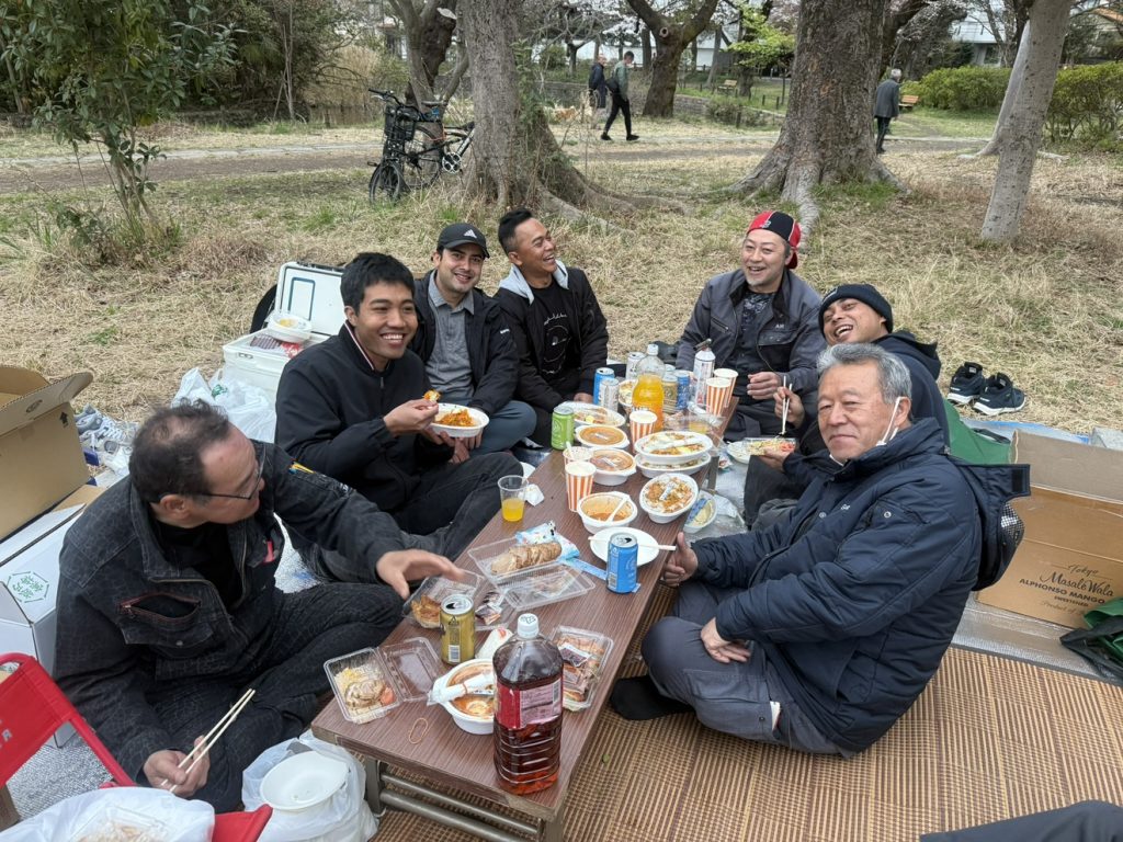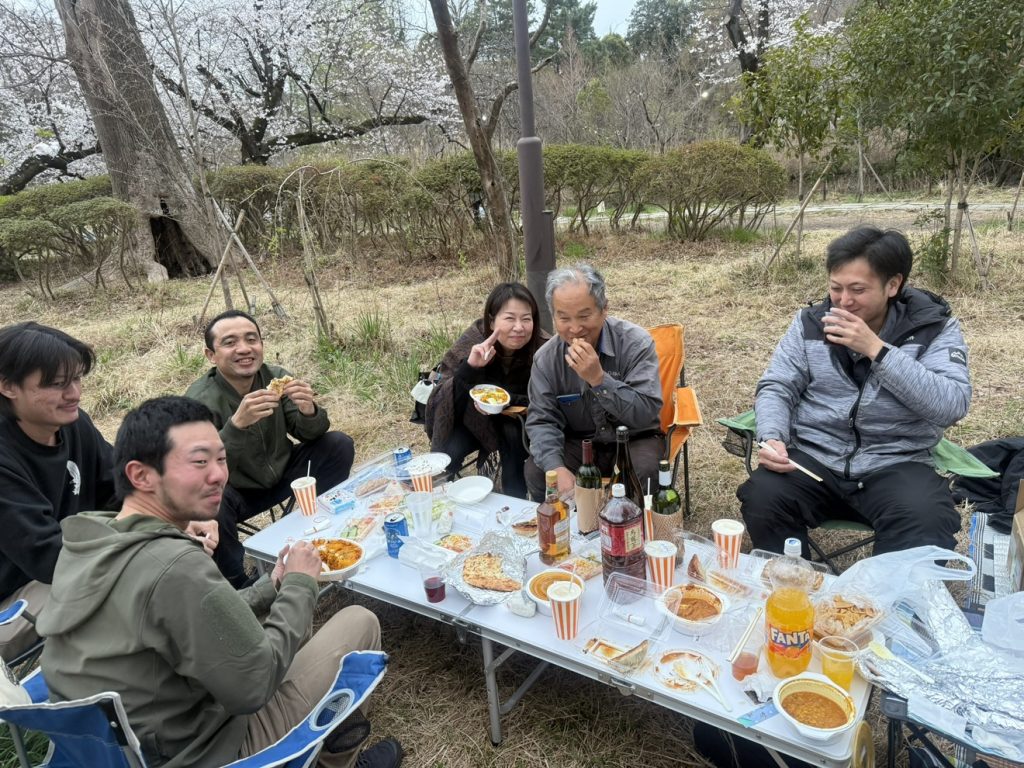 弊社会長ゆかりの新潟のお酒・地ビール、新入社員のお家でやっているインド料理屋のカレーなど美味しいものを集めて乾杯!
